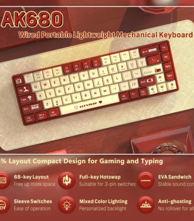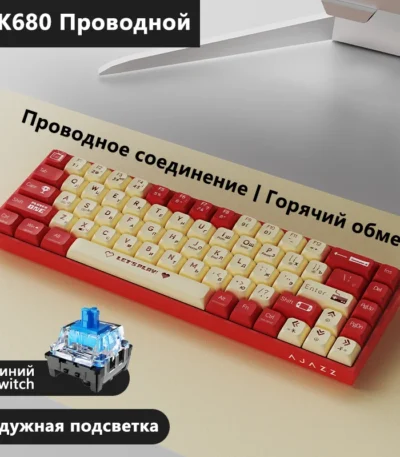 AJAZZ AK680 Mechanical Keyboard Gaming Wired Compact Laptop Tea Or Red Shaft 68 Keys