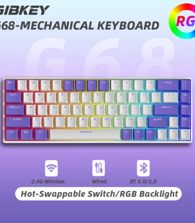 G68 Wireless Gaming Mechanical Keyboard Hot-Swappable Bluetooth Keyboard 68 keys RGB Light custom for Gamer Tablet Computer work