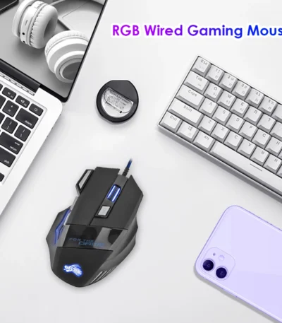 USB Wired Gaming Mouse 7 Button Backlit Ergonomic Mice 5500 DPI Backlight Adjustable Optical Mice for PC Gamer Computer Desktop
