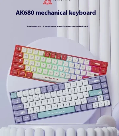 AJAZZ AK680 Gaming Mechanical Keyboard ABS Keycap 68 Keys Wired Wireless Bluetooth Keyboard Hot Swap Custom Gasket for Pc Laptop
