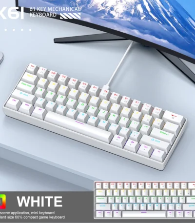 60% Portable Wired Mini Mechanical Keyboard, APAYADO K61 Mini Keyboard Wired,61 Keys Phantom RGB,Black,White,Red,Red/Blue Switch