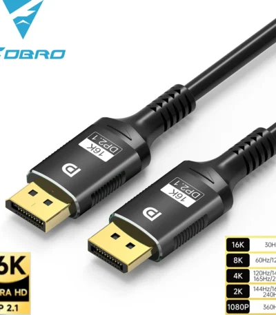 16K DP 2.1 8K@120Hz 4K@240Hz 80Gbps HDR Video Audio Displayport Cable Display Port for Laptop TV Xbox Projector Gaming Monitor