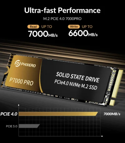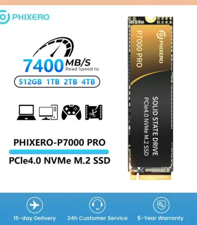 PHIXERO PCIe4.0 M.2 NVMe SSD PS5 Gaming 7000MB/S Internal Solid State Drive M Key 2280 SSD for Content Creator 512GB 1TB 2TB 4TB