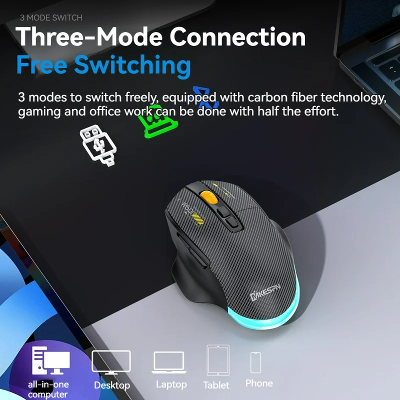 Tri-Mode Gaming Macro Mouse(Silent Button)