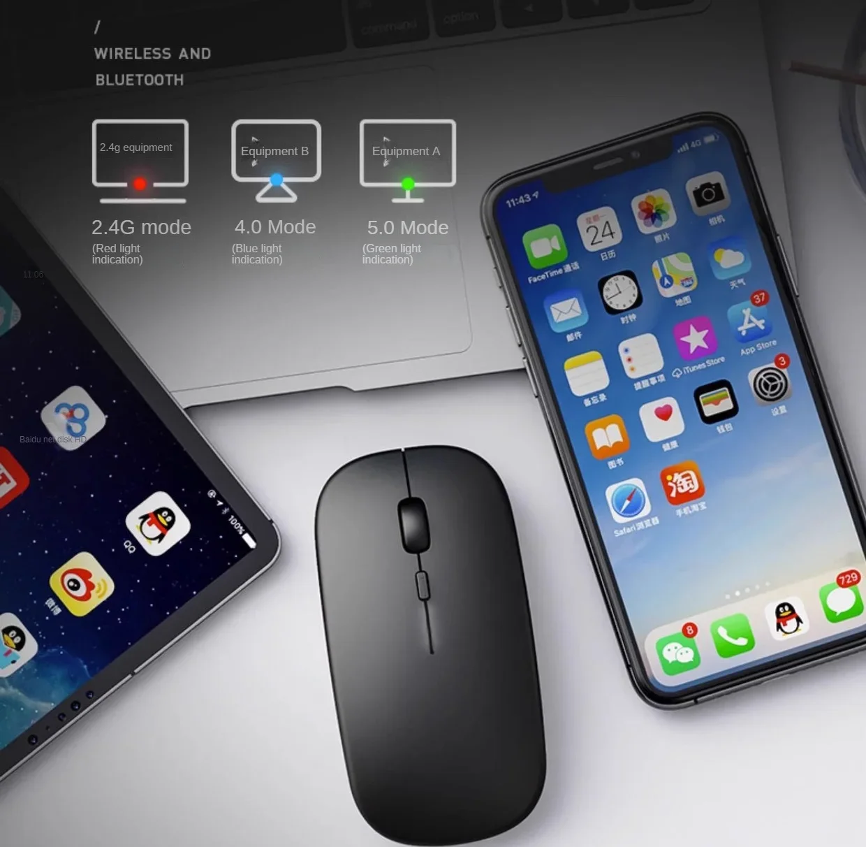3.Bluetooth connection: Push the switch to ON and the red light flashes, then you could connect to the mouse Bluetooth.