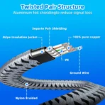 Cat 8 conductor is made of single-stranded 100% oxygen-free copper, which has a triple shielded,providing highly resistant with EMI/RFI Interference and delivering the highest fidelity for long-distance data transmission. And signal transmission of single copper is more stable than multiple copper, have a better connectivity. Each individual twisted pair comes shielded with Aluminum Mylar foil,considerably improves noise resistance and almost eliminates aliencrosstalk.