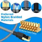 CAT8 LAN cord wrapped with quality cotton braided cord, which makes the LAN cable stronger and more durable. ??Withstands any twist, tug, and tangle, make the network cable more anti-corrosion, anti-aging, tough for use. HPUFTO's Cat8 patch cord precise preparation, reinforced treatment, flexible and not tangled, long use will not break.