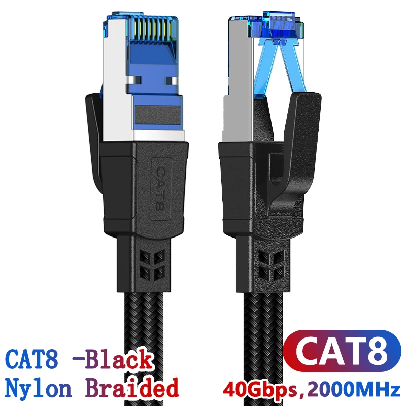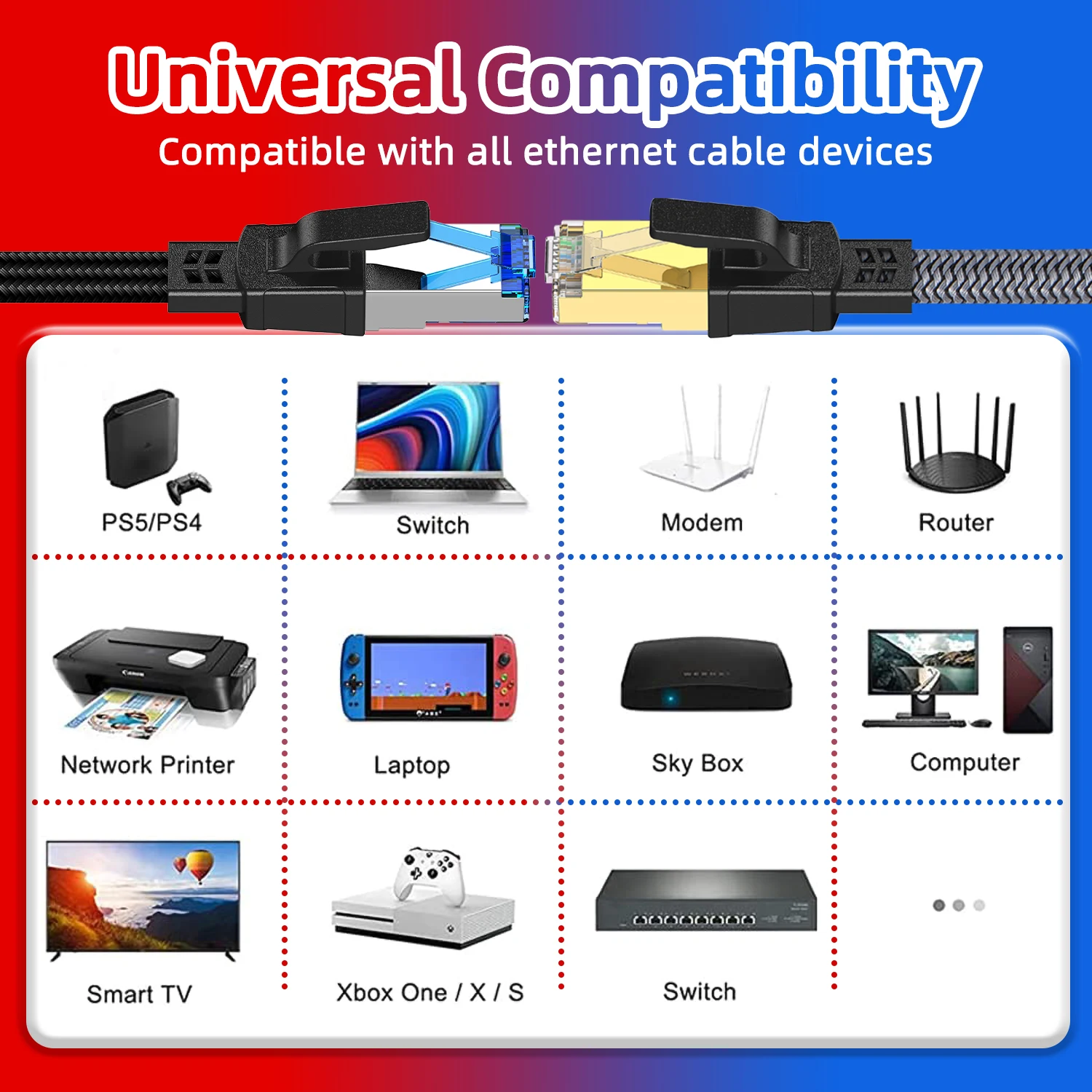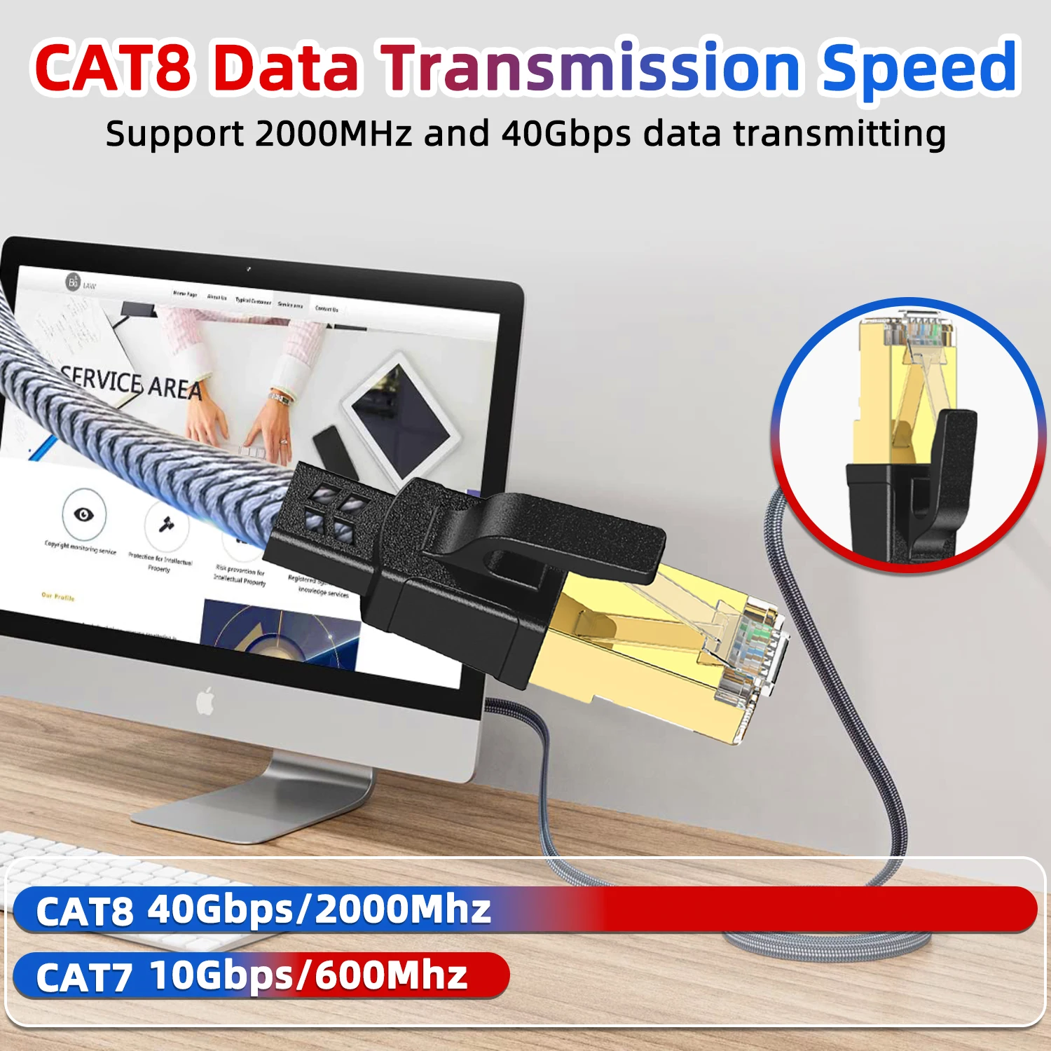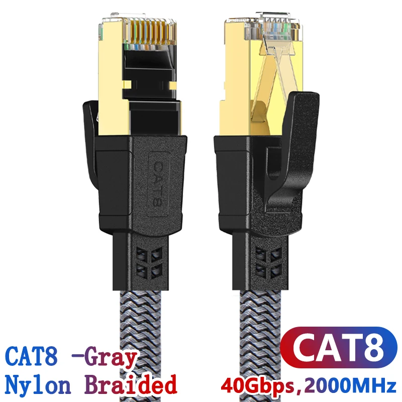 CAT8 Ethernet Cable 40Gbps 2000NHz Nylon Braided Flat RJ45 Network Lan Patch Cord for Laptops PS5 Router Internet Cable Cat 8