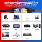 With the RJ45 Connector, HENGSUR Cat 8 ethernet cable can be perfectly compatible with Smart,TV,Switch,Modem,Router,Network Printer,PC,Laptop,Xbox,PS5, PS4, PS3?Hub and other networking devices. The use of this product is very wide, you can find the use of this product in a variety of occasions.