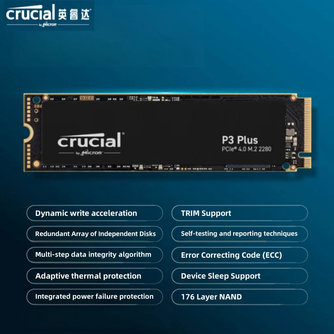 Crucial P3 Plus 1TB 2TB PCIe M.2 2280 SSD,Read/Write up to 5000/4200MB/s
