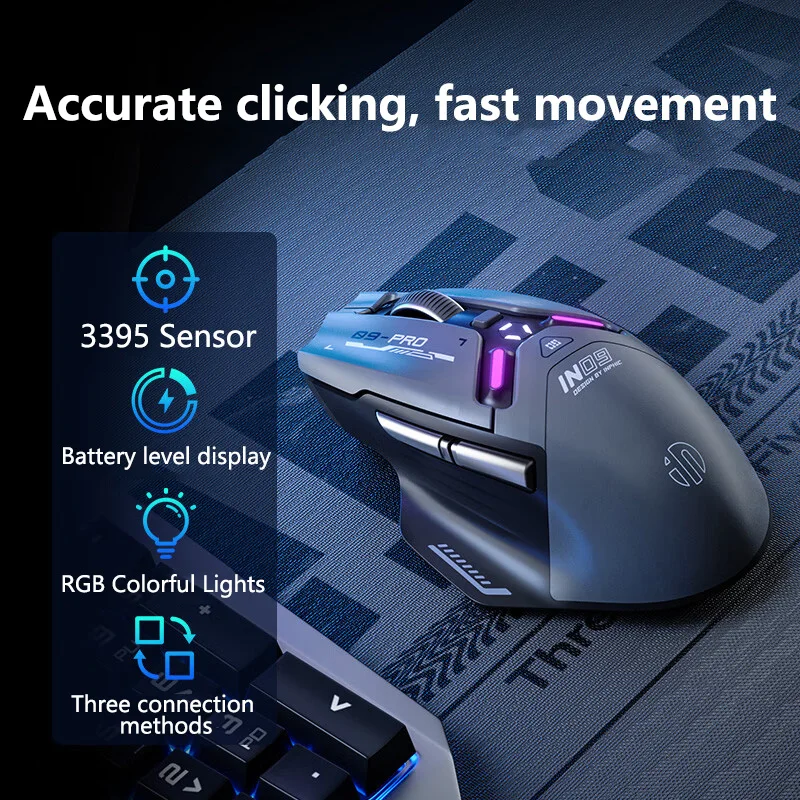 Inphic IN9 PRO Bluetooth Mouse Rechargeable 2.4G Wireless 26000DPI RGB Gaming Mouse Ergonomics Supports Wired Connections