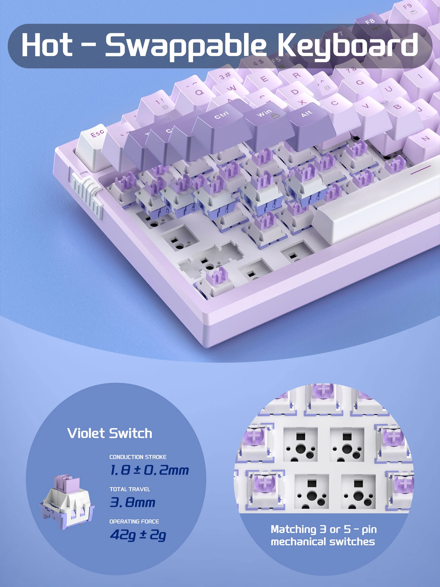HOT-SWAPPABLE SOCKET & PRE-LUBED CUSTOM SWITCHES: This 75% mechanical keyboard is compatible with 3-pin or 5-pin switches, allowing you to personalize your keyboard. The switches are individually removable and can be replaced in seconds. The SKY81 keyboard utilizes MageGee's finely tuned switches, which are pre-lubricated at the factory and built to last up to 70 million keystrokes for responsive and creamy typing.