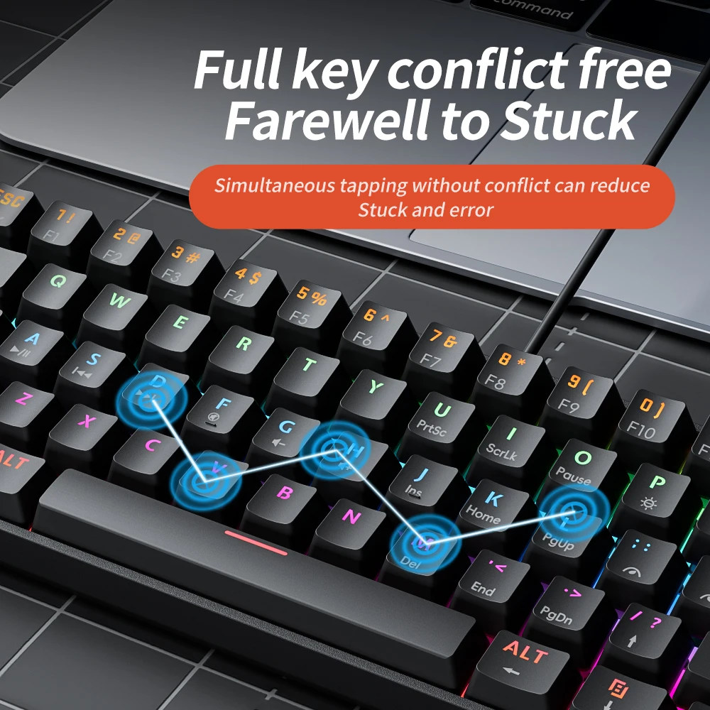 MUCAI MKA610 RGB USB Mini Mechanical Keyboard Red Switch 61 Key Wired Computer Notebook Portable Keyboard Pure Black
