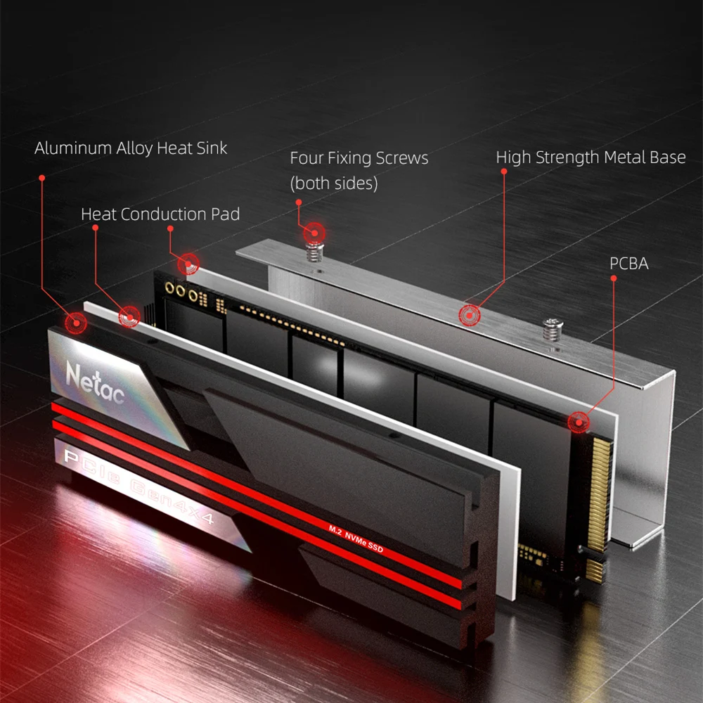 Netac M.2 SSD 512GB PCIe 4.0X4 7400MB/s SSD NVMe 1TB 2TB 4TB Hard Disk M2 2280 with DRAM Cache Heatsink for PS5 Laptop Desktop