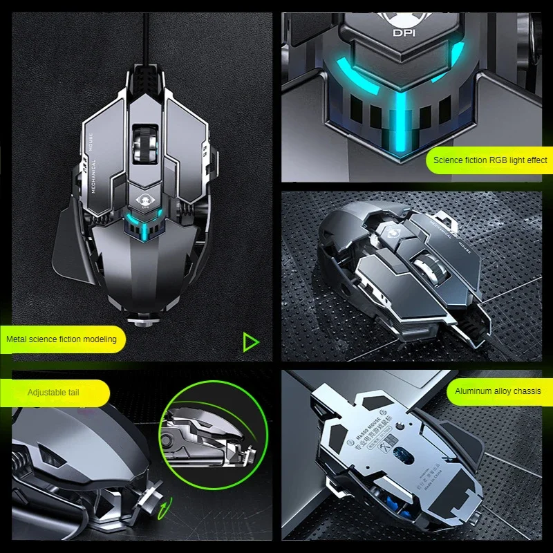 New Mechanical Wired Gaming Mouse 9 Key Macro Definition 12800 DPI Color Backlit Game Player Computer Peripheral for Windows PC